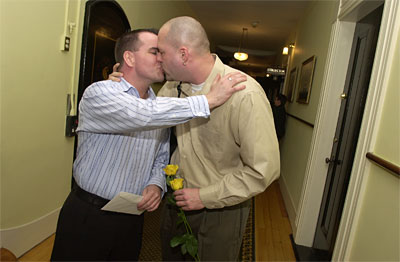Kissing after receiving their marriage license. Photo by Toni Carolina
