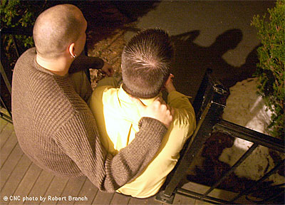 Gary and Bob sit on their front porch. Photo by Robert Branch