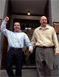 Murch and Halteman's day began in the same spot nearly six hours earlier. They arrived at City Hall before 6 a.m., determined to be the first in line to apply for a marriage license. Sitting on the building's cold granite steps as a thick mist hung in the air, the two men huddled over cups of coffee as they waited for the building to open at 8 a.m.