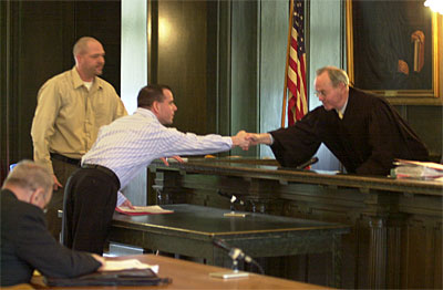 Gary thanks and shakes the hand of Judge Steven's as he grants their three day waiver. Photo by Toni Carolina