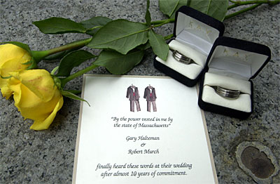 Gary and Bob's reception invitation. Hoping for the best, they had everything ready. Photo by Toni Carolina