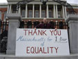 An entire year has passed and we have so much to be thankful for. Marriage has changed our lives, and woken us up. One year ago we felt helpless and begged those in power to protect our newly given right to marry. Today we walk as equals in Massachusetts changing views on same-sex marriage one conversation at a time. Who would have thought?