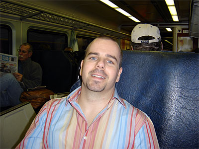 Exhausted from a long day, Gary is crashing on the train back to Salem. We still have dinner! Photo by Robert Murch