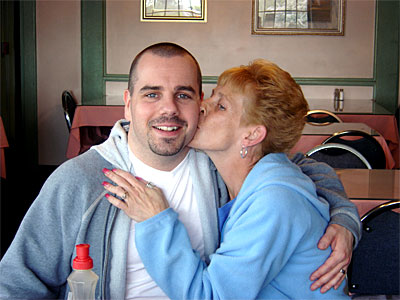 Gary gets smooched by Sue who was our waitress the day we got married! Photo by Robert Murch