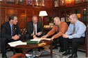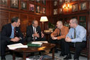 The following photos were taken during that visit to the State House. Bay Windows' photographer Marilyn Humphries was invited into House Speaker Salvatore DiMasi's office to capture the historic meeting. It was a truly amazing day.